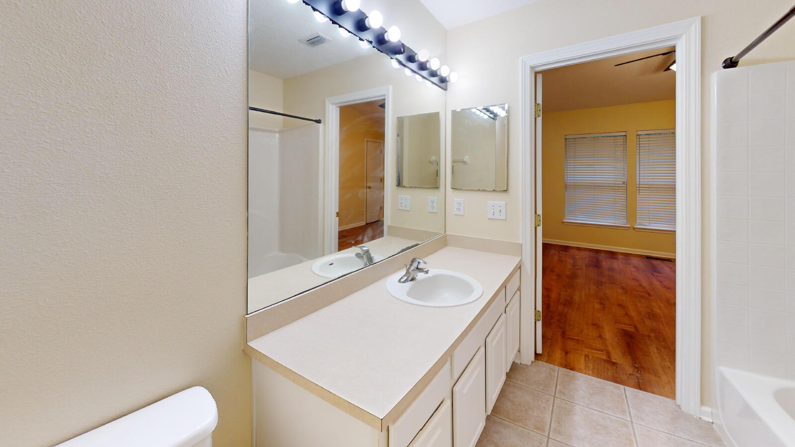 Charming 2beds 2baths residence. With a kitchen that serves as a central hub, featuring wood cabinetry, crisp white appliances including a built-in microwave and glass-top stove, and a sleek stainless steel side-by-side refrigerator, all set against durable tile flooring. With spacious bedrooms that have ceiling fans, and wood-plank flooring, with large windows fitted with horizontal blinds. In the bathrooms, you will find expansive mirrors with theater-style vanity lighting, integrated tub-and-shower combinations with neutral tile surrounds, and white vanities providing plenty of storage. Located in the secure, gated community of Drayton Park, residents enjoy access to premium amenities including a private clubhouse and a resort-style swimming pool.